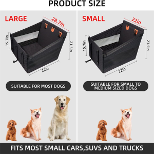 ASIENTO PARA CARRO-BOOSTER MEDIANO: 56 CM X 56 CM X 55 CM PARA MASCOTAS PEQUEÑAS Y MEDIANAS LARGE: 73 CM X 56 CM X 55 CM PARA MASCOTAS MEDIANAS Y GRANDES.