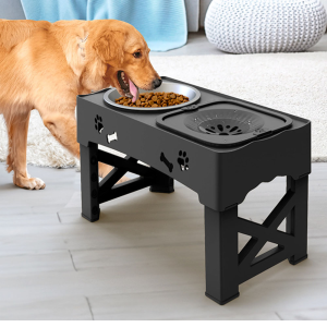COMEDERO DOBLE ELEVADO CON BORDE 5 ALTURAS 43 CM X 24.3 X 8.2 CM. ALTURAS 8.2 CM 22 CM 25 CM 28 CM 31 CM COMEDERO LENTO Y BEBEDERO LENTO.