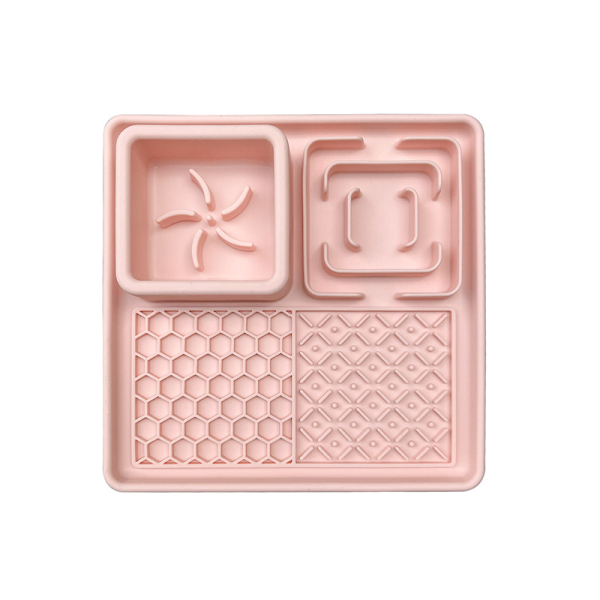 COMEDERO LIKMAT DE SILICON PARA ALIMENTO EN PASTA O HUMEDO, ROSADO MEDIDAS: 19.8 X 19.8 X4.9 CM