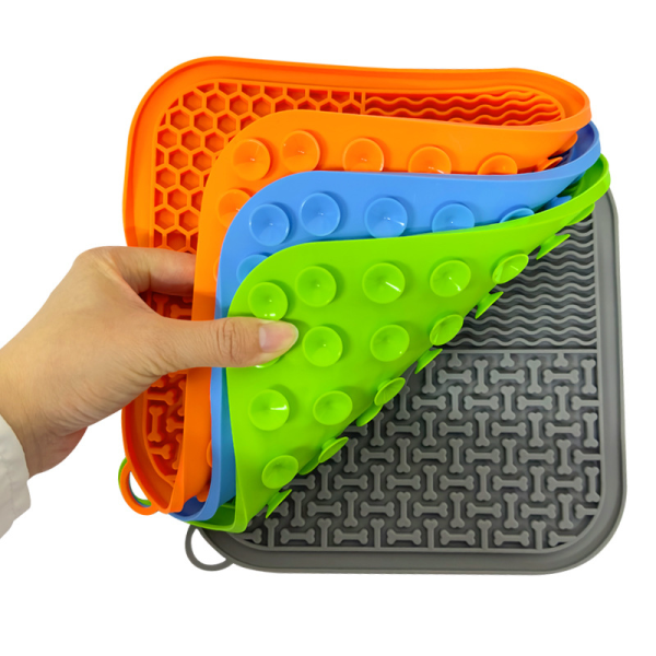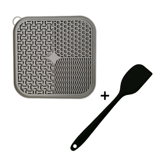 COMEDERO LIKMAT DE SILICON PARA ALIMENTO EN PASTA O HUMEDO, GRIS CON ESPATULA MEDIDAS: 20 X 20 CM
