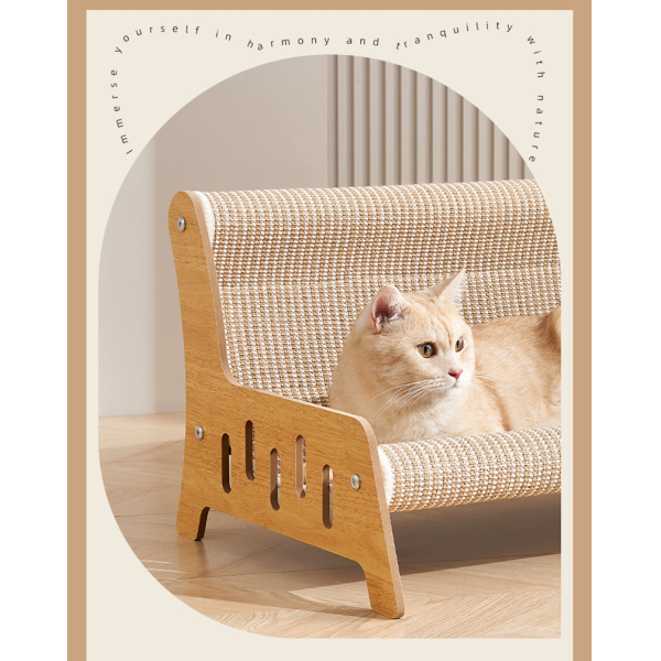 SILLON RASCADOR PARA GATO MEDIDAS: 52 X 45 X 35 CM MATERIAL: MADERA PRENSADA ECO-FRIENDLY Y TELA DE FELPA Y SISAL Y POLIPROPILENO.