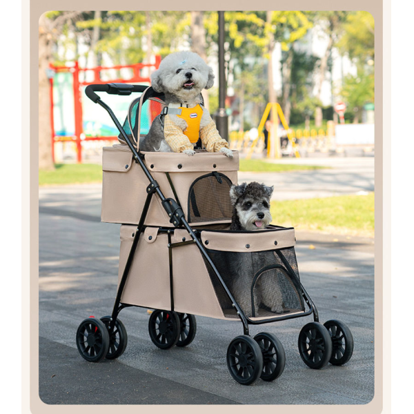 COCHE DOBLE PARA MASCOTAS NEGRO MEDIDA: 67 X 50 X 95 CM MATERIAL: TELA OXFORD, METAL Y POLIPROPILENO