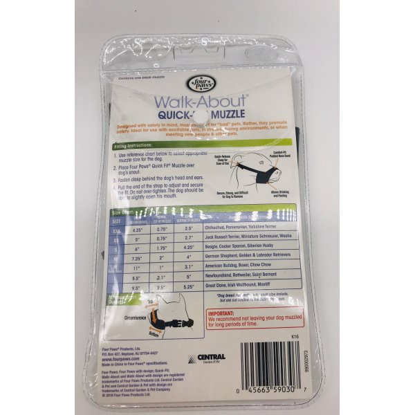 1.Use reference chart below to select appropriate muzzle size for the dog.