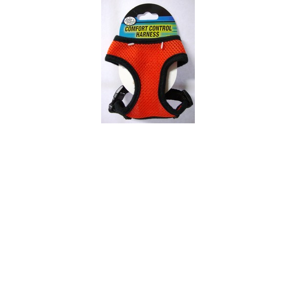 ENGLISH Comfort Control Harnesses. Four Paws Comfort Control Harnesses are comfortable for small dogs to wear with complete control for the owner. The durable, long lasting neoprene mesh material is a very light weight and breathable for comfort. Adjustable nylon straps for a perfect fit. Harness size: XS. Weight: 3 to 4 lbs Chest : 11 inches to 13 inches . Neck: 7 Inches to 8 inches. Color Orange. Fit to Puppy Yorkie, Puppy Maltese, Chihuahua.