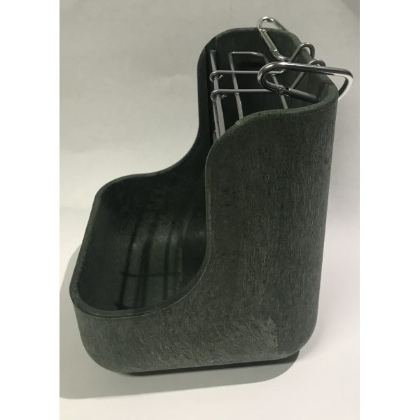 Made of a plastic and wood composite material and features quick lock to secure feeder in place