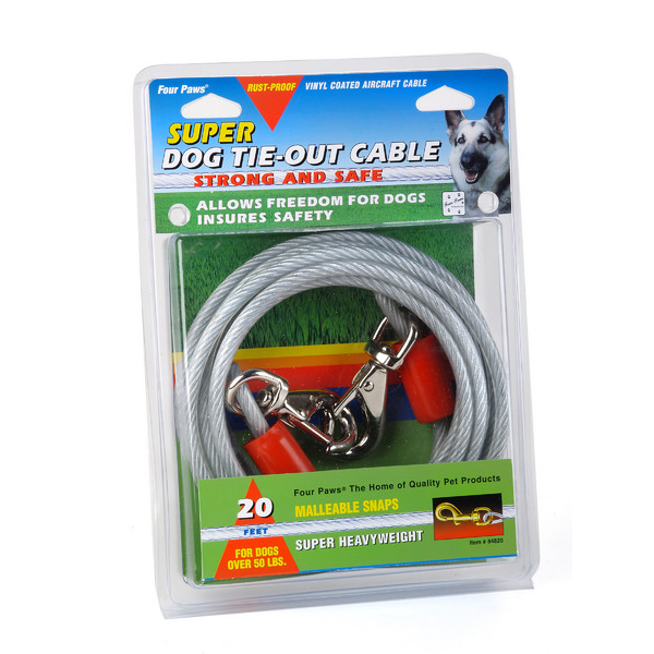 Tie Out Cable - Super ,Silver, 20 ft (6.10 m) Four Paws Dog Tie Out Chains & Cables ensure pet safety while allowing complete freedom. These rust-proof chains are available in a variety of lengths and weights