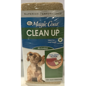 Magic Coat® Pet Hair Remover safely and gently removes hair from pet beds, clothing, carpet and furniture. It removes lint and dust from any type of surface. Easy to clean and completely reusable!