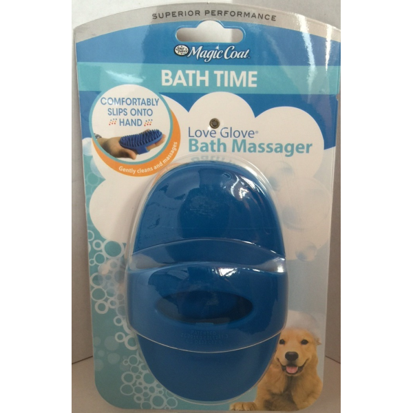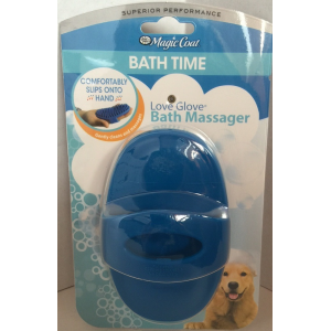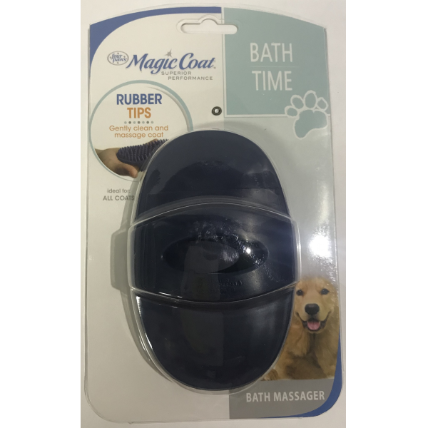 OUR FOUR PAWS MAGIC COAT BATH MASSAGER HAS AN EASY SLIP-ON HANDLE THAT FITS COMFORTABLY ON ANY HAND! THE GLOVE GENTLY MASSAGES SHAMPOO DEEP INTO YOUR PETS COAT, ENSURING A THOROUGH CKEANING. ITS FLEXIBLE RUBBER TIPS CAN ALSO BE USED TO LIFT OUT DIRT, DUST, AND DEAD HAIR BEFORE OR AFTER BATH TIME!