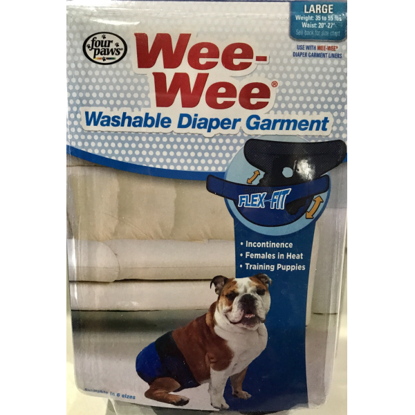 Wee-Wee® Diaper Garment works best when used with disposable Wee-Wee® Diaper Garment Pads. These machine-washable garments have adjustable closures. Great for puppies not yet housebroken, females in season, dogs with excitable urination and incontinence. Available in 6 sizes: