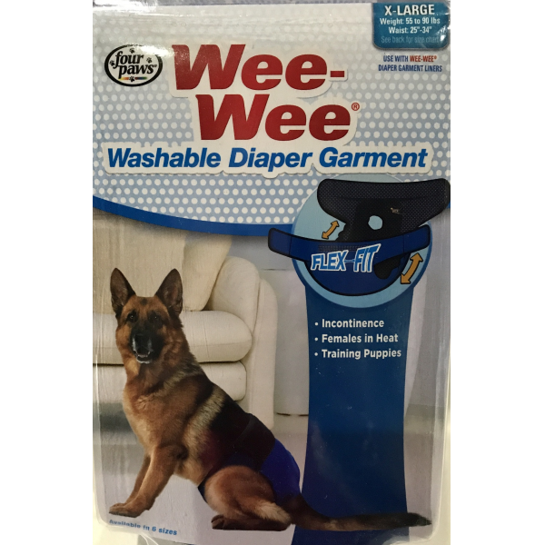 Wee-Wee® Diaper Garment works best when used with disposable Wee-Wee® Diaper Garment Pads. These machine-washable garments have adjustable closures. Great for puppies not yet housebroken, females in season, dogs with excitable urination and incontinence. Available in 6 sizes: