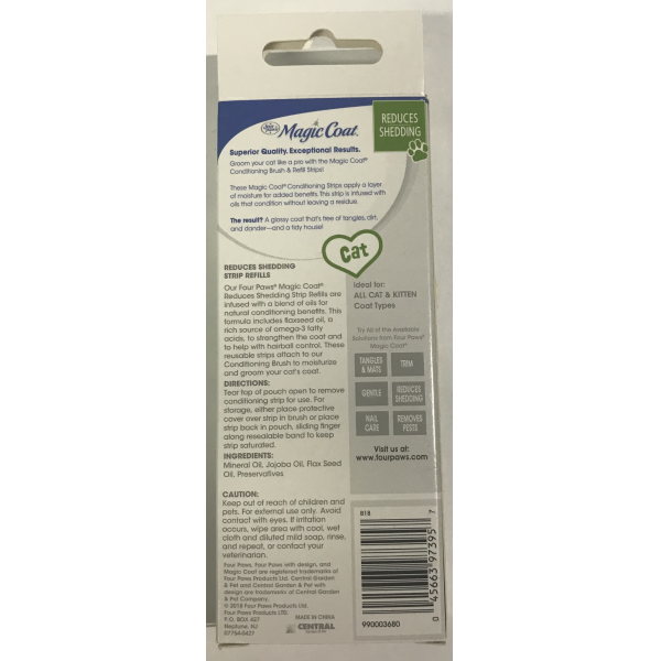 Reduces shedding strip refills are infused with a blend of oils for natural conditioning benefits. this formula includes flaxseed oil, a rich source of omega-3 fatty acids, to strengthen the coal and to help with hairball control. These reusable strips attach to our conditioning brush to moisturize and groom your cat´s coat.