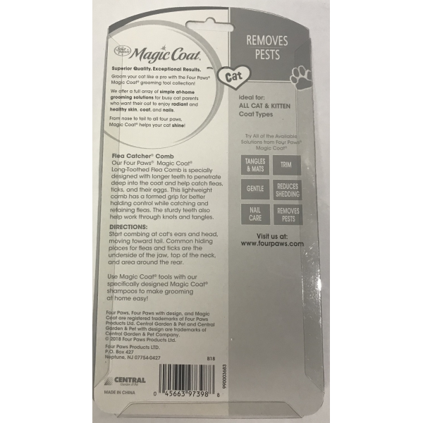 Removes pests - Flea catcher comb - Longer teeth -Also penetrates - Thick coats - Ideal for: all coats