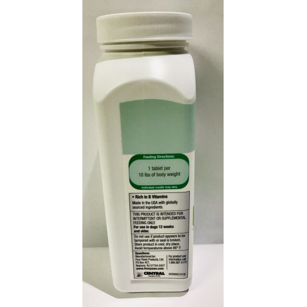 Instrucciones de alimentación: 1 tableta por cada 10 libras de peso corporal, los resultados individuales pueden variar. Para uso en perros de 12 semanas o más.