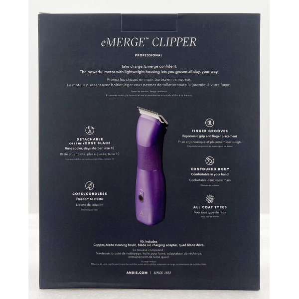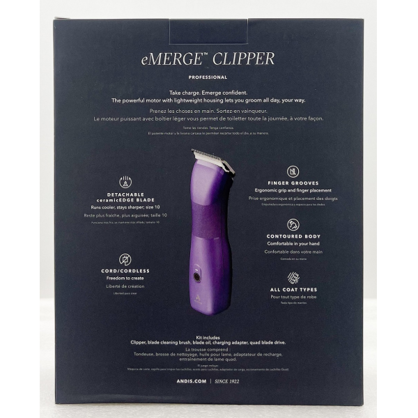 Kit includes: Clipper, blade cleaning brush, blade oil, charging adapter, quad blade drive