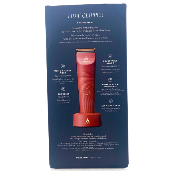 Kit Includes: Clipper, 6 attachment combs, charging stand, USB-C charging adapter, blade oil, blade brush.
