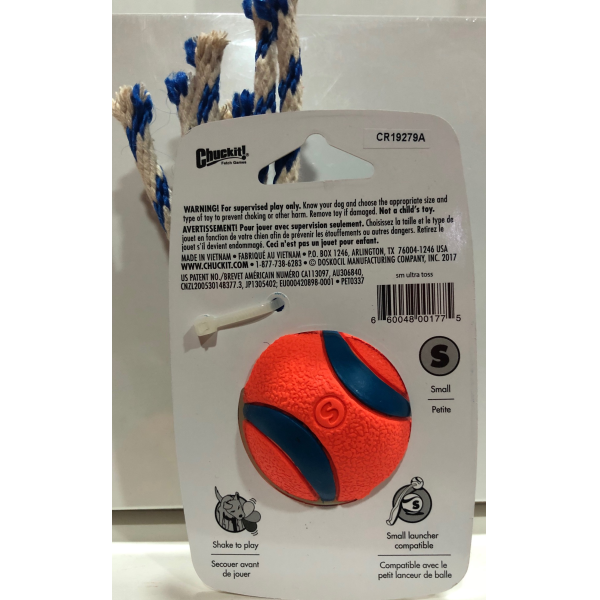 Designed for the most demanding use, Chuckit!® Ultra Toss® is no ordinary ball. Simply put, this is the best ball for games of fetch or tugging. Developed to have high bounce, high buoyancy, high visibility, and high durability. The Chuckit! Ultra Toss promises to outplay the ordinary. Made from natural rubber so it is easy to clean after a fun-filled game of fetch. The natural cotton rope makes for easy handling and gripping. Bright color gives increased visibility and helps to prevent the ball from getting lost. Compatible with Chuckit! Launchers.
