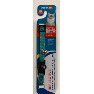 Keep your cat safe and fashionable with a Petmate® Adjustable Reflective cat collar. Color-coordinated "Meow" buckles and jingle bells give these collars a unique flair and personality matched only by the cats wearing them! These collars are made from quality webbing with a light-reflecting contrast dot print, come in fun, trendy patterns and feature a multi-directional breakaway buckle that easily releases, should your cat become entangled. Safe for indoor and outdoor use.