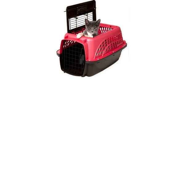 Con 2 puertas una al frente y otra en el techo para que sea mas facil meter o sacar a su mascota