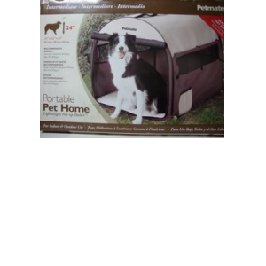 Portable pet containment. Conveniently folds into carrying case. Can be used outdoors, water-resistant canvas. 4 ground stakes included. Climate control on all 4 sides.