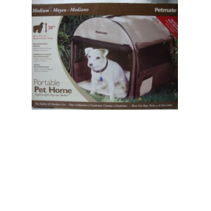 Portable pet containment. Conveniently folds into carrying case. Can be used outdoors, water-resistant canvas. 4 ground stakes included. Climate control on all 4 sides.