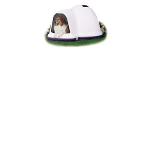 This top-of-the-line igloo shaped doghouse has an extended offset doorway to improve rain resistance and wind protection. Roof ventilation. Heavy duty construction. With Microban antimicrobial.