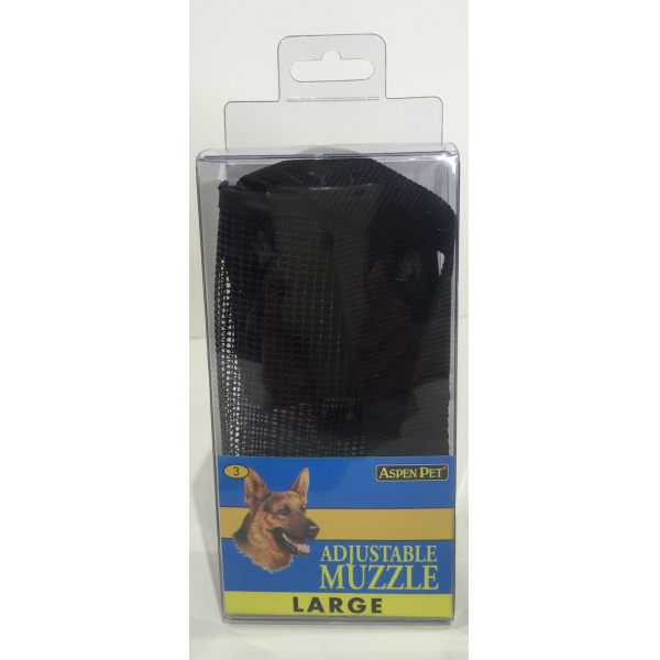 Aspen Pet Adjustable Muzzle is constructed of a breathable mesh material with a quick snap closure to make muzzling easier. A muzzle is a safe and humane way to handle dogs that are aggressive or injured. It prevents biting, chewing, and barking without catching hair or causing pain. It features a soft, padded nose band and still allows your beloved pet to pant and drink. Recommended by trainers and handlers.