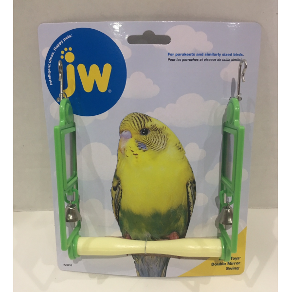 JW Double Mirror Perch is a fun new swing that has a mirror on either side for your pet birds enjoyment. Designed for your birds well-being, when your feathered friend sits on this swing it will never be alone. JW Double Mirror Perch is a fun bird accessory for parakeets and other similar sized birds.