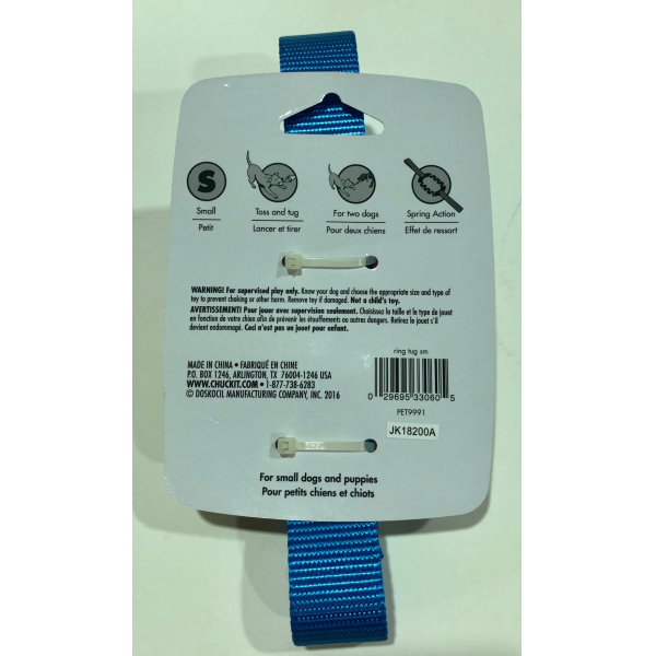 Get ready for interactive play with the Chuckit!® Ring Tug! Perfect for tug-o-war or a game of fetch, the Ring Tug features a TPR center that expands and contracts while being pulled. Durable nylon looped ends make it easy to grip and pick up. The TPR center ring provides weight making the Ring Tug a great fetch toy! Bright colors help your pet find it in any landscape. Great for multi-dog households and provides mental stimulation and promotes healthy exercise.