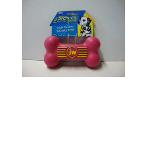 ENGLISH: isqueak bone. Tough rubber squeaky bone. As with any pet toy, always supervise your pet while playing. Remove toy it damaged or if parts become separated, as injury could result.