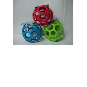 Juguete sumamente duradero. El material es suave y rebota. Por su forma y los agujeros que trae ofrece mas lugares para que la mascota lo pueda agarrar con facilidad. 22 cm diametro.