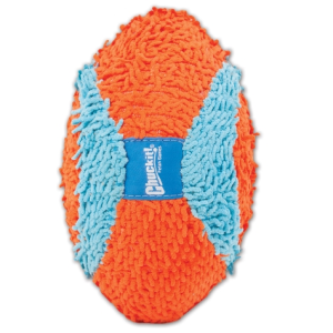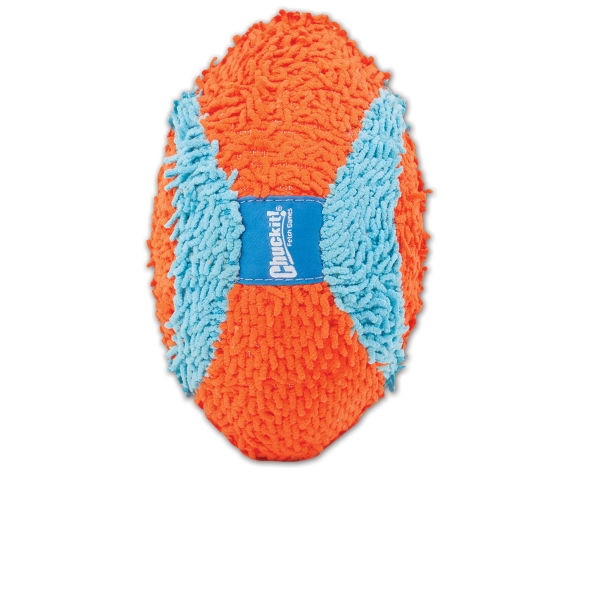 Get fetch going indoors with the Chuckit! Indoor Fumbler Dog Toy! This highly recognizable, intuitive football shaped dog toy is great for active dogs who want to play fetch indoors. Made from soft chenille fabric, this lightweight toy wont damage floors or break furtniture. The Fumbler is also Indoor launcher compatible for added fun. Lightweight and perfect for indoor play when the weather isnt cooperating outside!