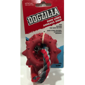 Designed to engage your dogs five senses, Dogzilla toys provide fun and innovative ways for your dog to play. Dogzilla® Dino Links are constructed of tightly woven rope and tough rubber, making it great for an interactive game of tug-of-war. The bumpy texture stimulates gums to promote good dental health for your dog. The durable construction holds up against even the strongest of chewers.