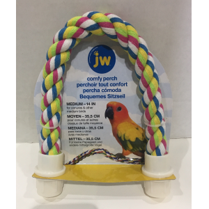 Keep your pet bird comfortable and stress-free with the JW Comfy Perch Cross. The Comfy Perch Cross works wonders for helping to relieve cage stress and boredom. Twist and bend the Comfy Perch Cross into any creative shape you want! Your pet bird will love exercising with this perch. It will hold its shape without the danger of wires or stiffeners being exposed, so your pet bird will be comfortable all day.