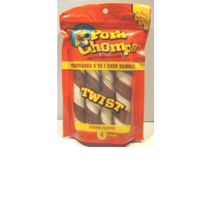 ESPAÑOL: Rollitos Pork´s chomps. 4 unidades. Con sabor a tocino. ENGLISH: Pork´s chomps. 4 count. Bacon flavored . These bacons are the safer alternative to rawhide that won´t stain carpet.