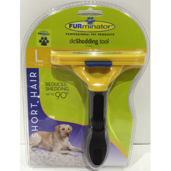 For short hair dogs 51 - 90 lbs. 4" deShedding edge designed for coats shorter than 2 inches. Reduces loose hair from shedding up to 90% on regularly groomed dogs. Stainless steel deShedding edge reaches deep beneath your dogs short topcoat to gently remove undercoat and loose hair. Used and loved by professional groomers. FURejector® button cleans and removes loose hair from the tool with ease. Designed by a groomer for professional results. These products may be covered by one or more patents.