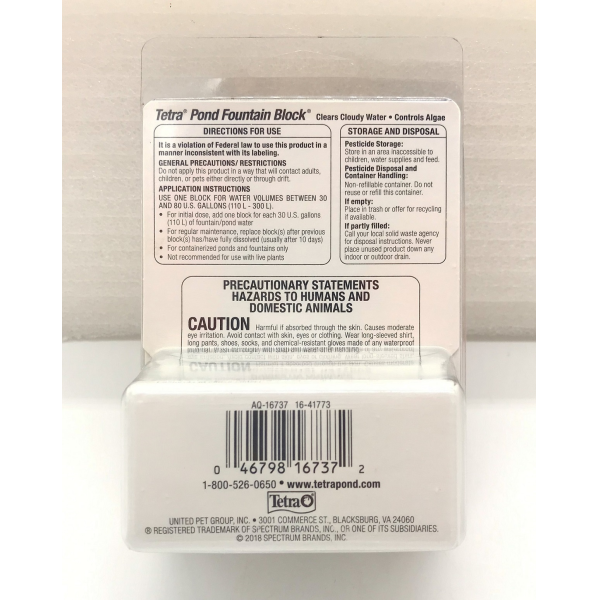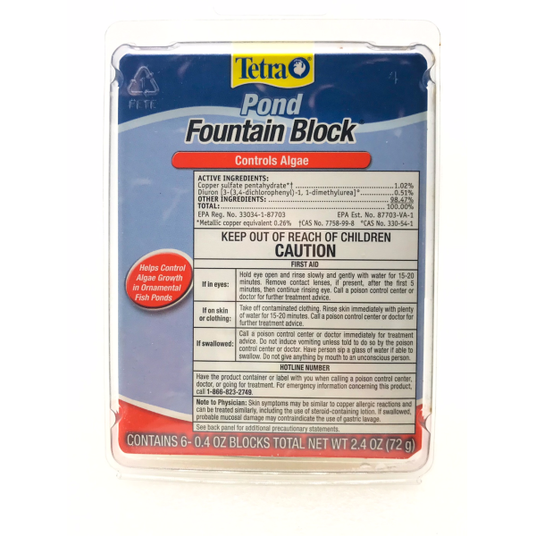 °For initial dose, add one block for each 30 U.S. gallons (110 L) of pond/fountain water