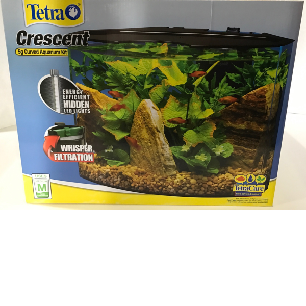 The Tetra Crescent 5 is perfect for a kitchen, bedroom, living room or dorm room. Each kit includes a seamless, curved front aquarium, clear cover, black base frame, energy-efficient, bright white LED lighting with a low voltage power adapter, and Tetra Whisper® internal filter with a medium Bio-Bag®. All you add is water, décor and fish! Remember to use a heater for tropical fish.