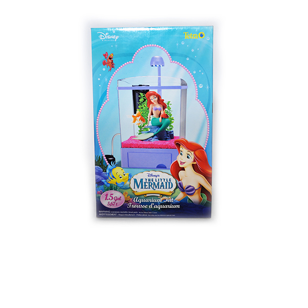 The Little Mermaid Aquarium Kit features a purple-framed. Equipped with Whisper® 3i In-Tank Filter, air pump and tubing, two filter cartridges 825900, storage drawer, low-voltage power converter, TetraCare® brochure with samples, blue and red lenses, and 9-LED adjustable light.