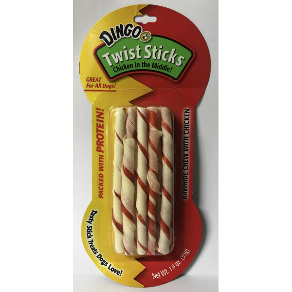 Dogs love the taste of Dingo rawhide bones with real meat in the middle! Dingo Twist Sticks offer the same great taste but in a fun and playful shape. Dingo Twist Sticks give your dog a fun and delicious treat that is bursting with flavor!