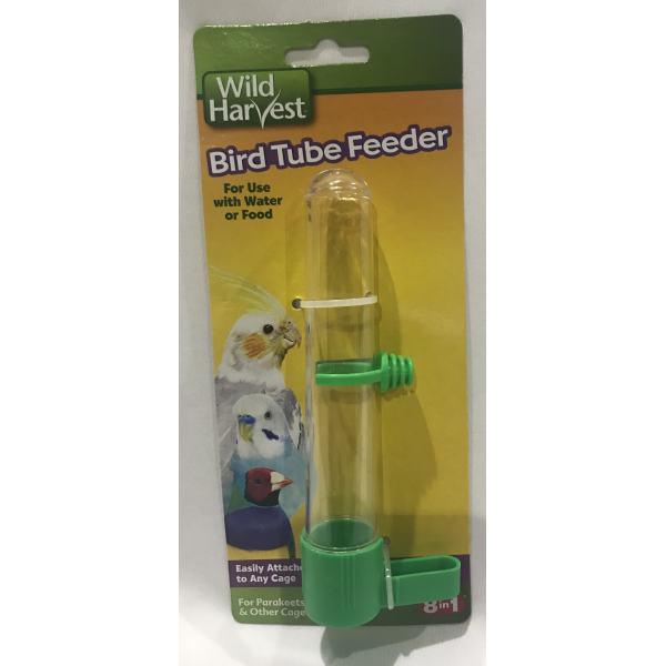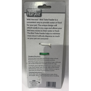 Wild Harvest Bird Tube Feeder is a convenient way to provide water or food for your pet. The unique design attaches easily to any cage and allows your bird easy access to water or food. The Bird Tube Feeder helps to minimize mess since it will only dispense as much as your pet can consume!