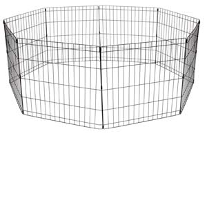 Four Paws Exercise Pens are black for maximum durability. All pens have 8 panels, 24 inches in width. The exercise pens are available in heights of 18,24, 30, 36, 42 and 48 inches. Our patented, inter-locking system securely holds the panels in place and assures the safety of pets. K-9 Keeper Exercise Pens feature a full convenient door with security latches for easy walk-through access. K-9 Keeper Exercise Pens can be configured in many different positions. All K-9 Keeper Exercise Pens fold flat for easy storage and portability.