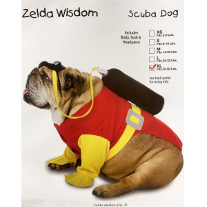 DISFRASES ZELDA SCUBA DOG COSTUMEX-LARGE4454-XL Sirve para mascotas de 32 a 40 libras,incluye disfraz y gorro. Medidas: Cuello 14"-18", 36 x 46 cm Pecho 21"-25", 53.5 x 63.5 cm Largo 18"-21", 46 x 53.5 cm