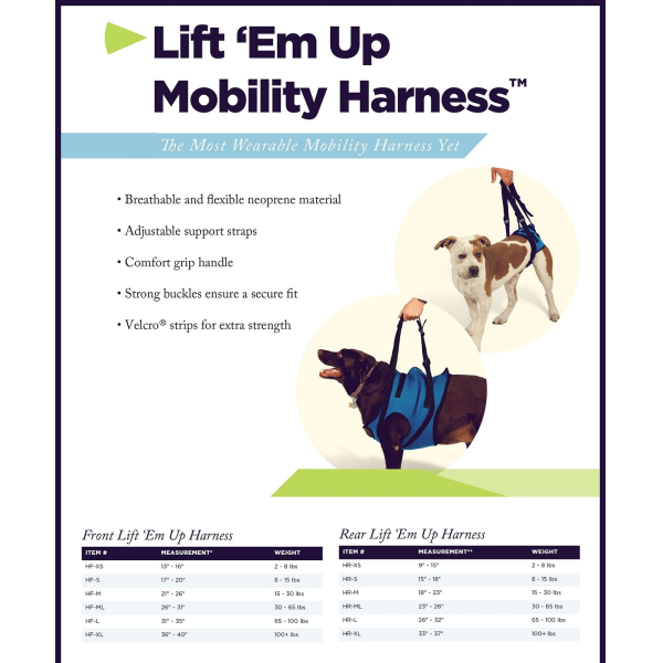 Accurate chest measurement strongly recommended. Weight provided to aid in sizing; all harnesses will provide ample support.